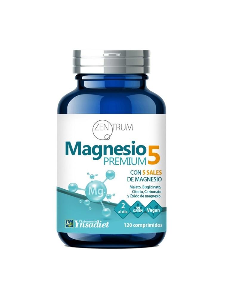 MAGNESIO 5 Premium de Ynsadiet, es un complemento alimenticio elaborado a base de 5 sales de magnesio: malato, bisglicinato, citrato, carbonato y óxido de magnesio. El magnesio contribuye al funcionamiento normal de los músculos.